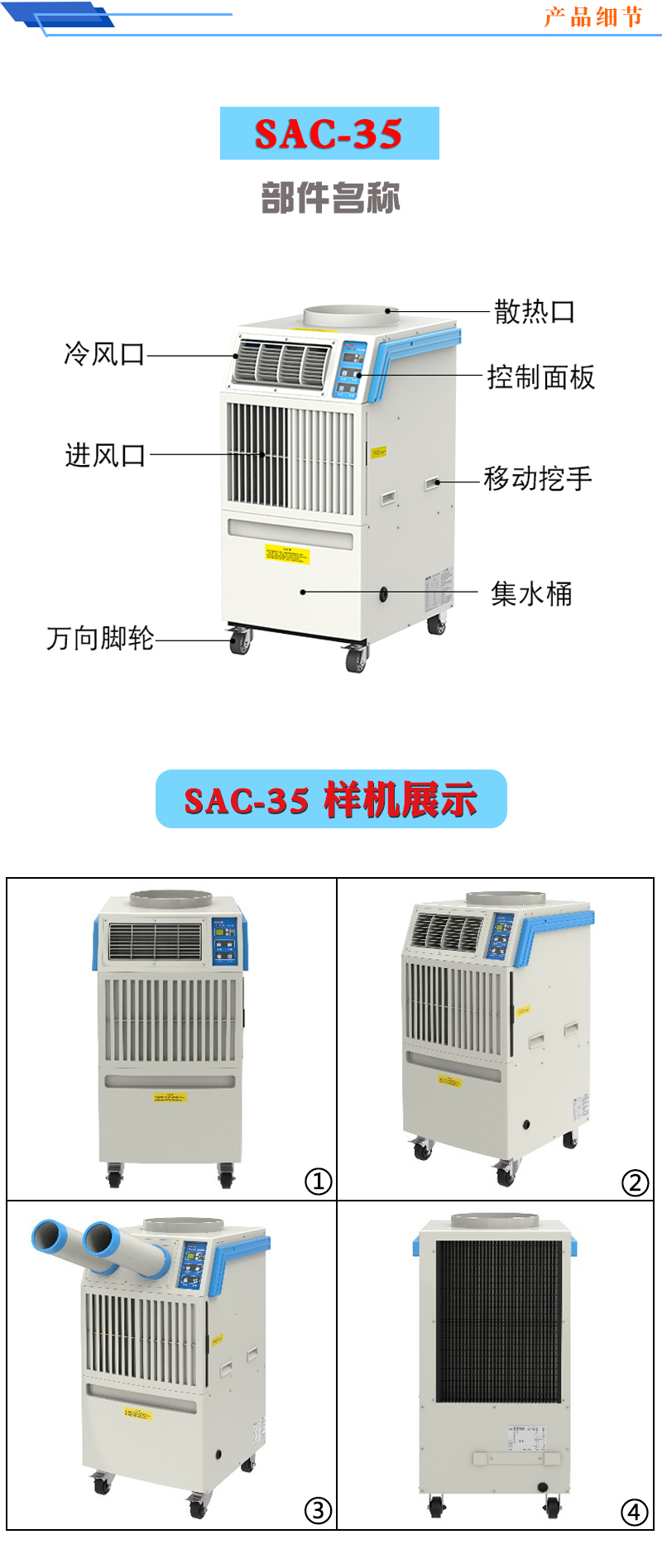 移动工业冷气机SAC-35 制冷量3.5KW/12000BTU 风量750M³/H