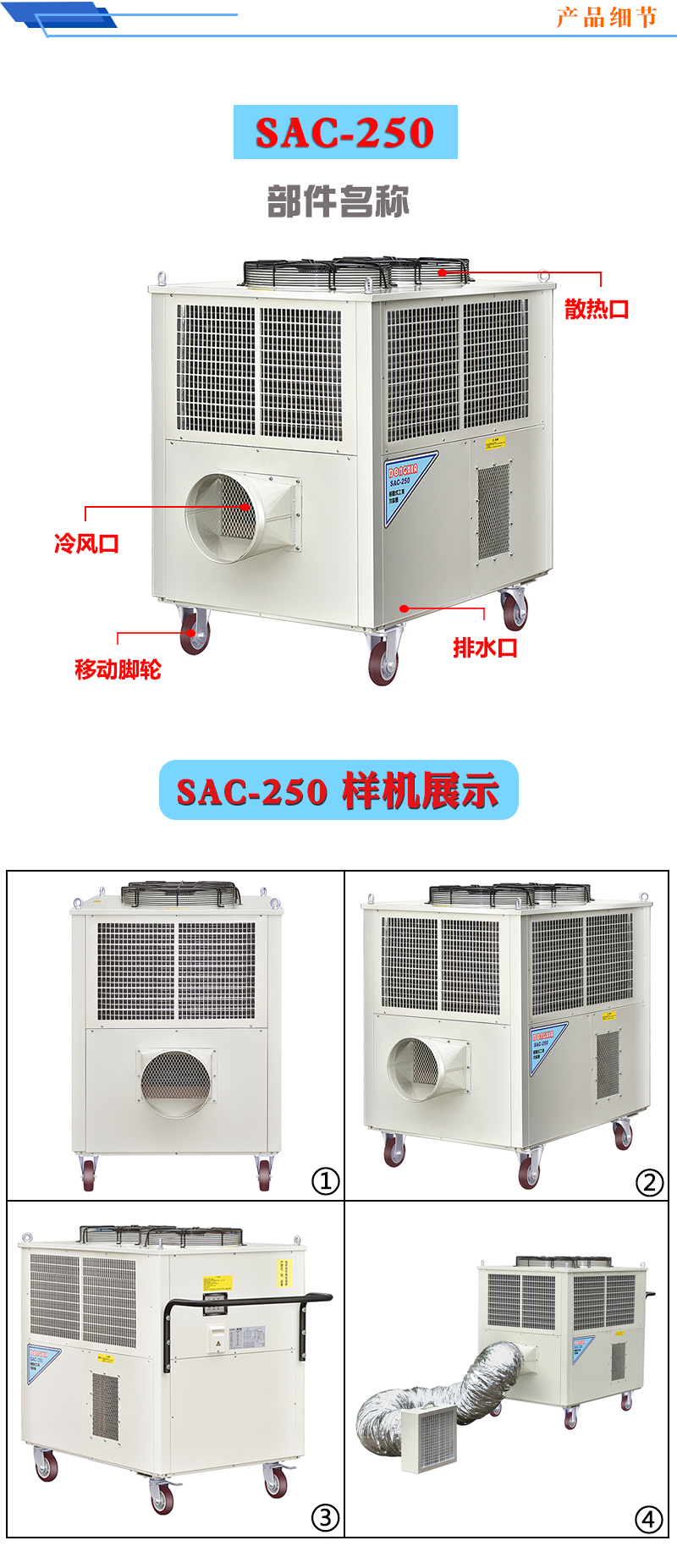 移动工业冷气机SAC-250 制冷量30KW/102400BTU 风量3300M³/H